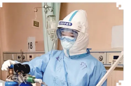 在穿上防护服的那一刻,简单的护理操作变得不再简单,然而,瘦弱的学姐并没有因为高强度的工作而倒下,反而是越加坚定,越加努力地投入到一线工作,她正努力地和死神抢命!