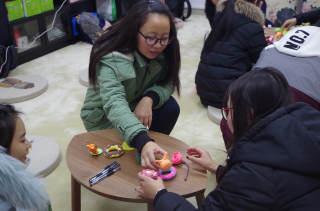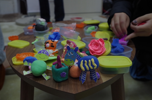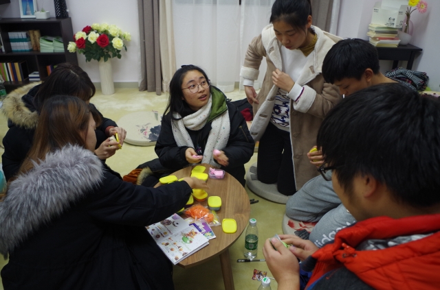 活动开始,为了增进各心理委员的熟悉度,同学们围坐成一圈,分别在纸上写下自己的兴趣爱好、喜欢和不喜欢的东西,并和周围的同学相互介绍自己。随后大家分为两组进行了第一个小游戏——绘画传递,由第一位同学画出指定成语,后面的同学参照前一位的画作依次接力绘画,再由最后一位同学猜词。同学们奇妙的画风增加了猜谜的难度和趣味性,闹出了许多小笑话,拉动了全场的气氛,现场充满欢声笑语,还有精美的小礼品赠送。最后,大家动手制作了黏土作品,无论是植物、小动物还是食物,在同学们的手中都栩栩如生。最令人印象深刻的是孙思娴同学制作的甜甜圈,十分逼真,引来了阵阵赞叹。在这个游戏中,各个心理委员都非常积极地投入,对彼此的认识也在不断加深。