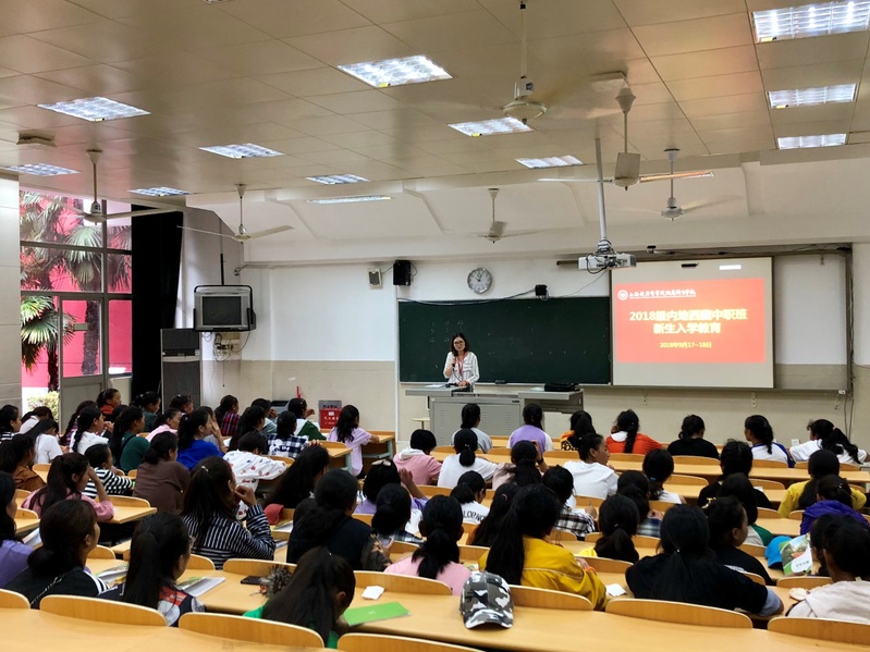 为保证2018级内地西藏中职班77名新生尽快适应公司的学习和生活环境,9月17-18日,为期两天的内地西藏中职班新生入学教育在阶梯教室举办。