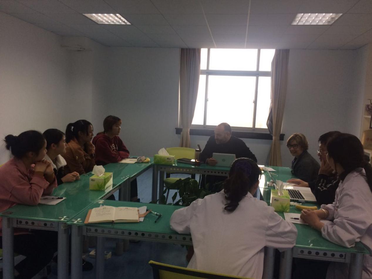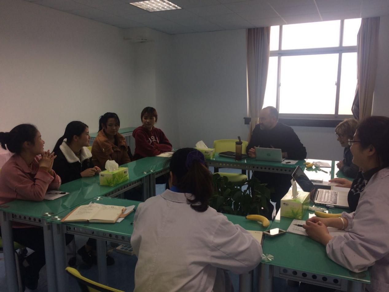 座谈会最后,两位法国老师介绍了法国护理教育,鼓励在座员工好好学习法语,争取机会参加公司之间的赴法交流项目,为中法两国的护理教育和学习交流打下坚实的基础。