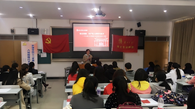 开班典礼结束之后,我们邀请复旦大学博士生讲师团讲师带来第一讲《坚定理想:共产党人的诗与远方》。讲师团老师以风趣幽默的语言从不忘初心:共产主义远大理想;脚踏实地:中国特色社会主义共同理想;共产党员如何坚持理想信念三个方面深入浅出的为培训班学员讲解了坚定理想信念对于党员、对于党组织、对于国家的重要性。