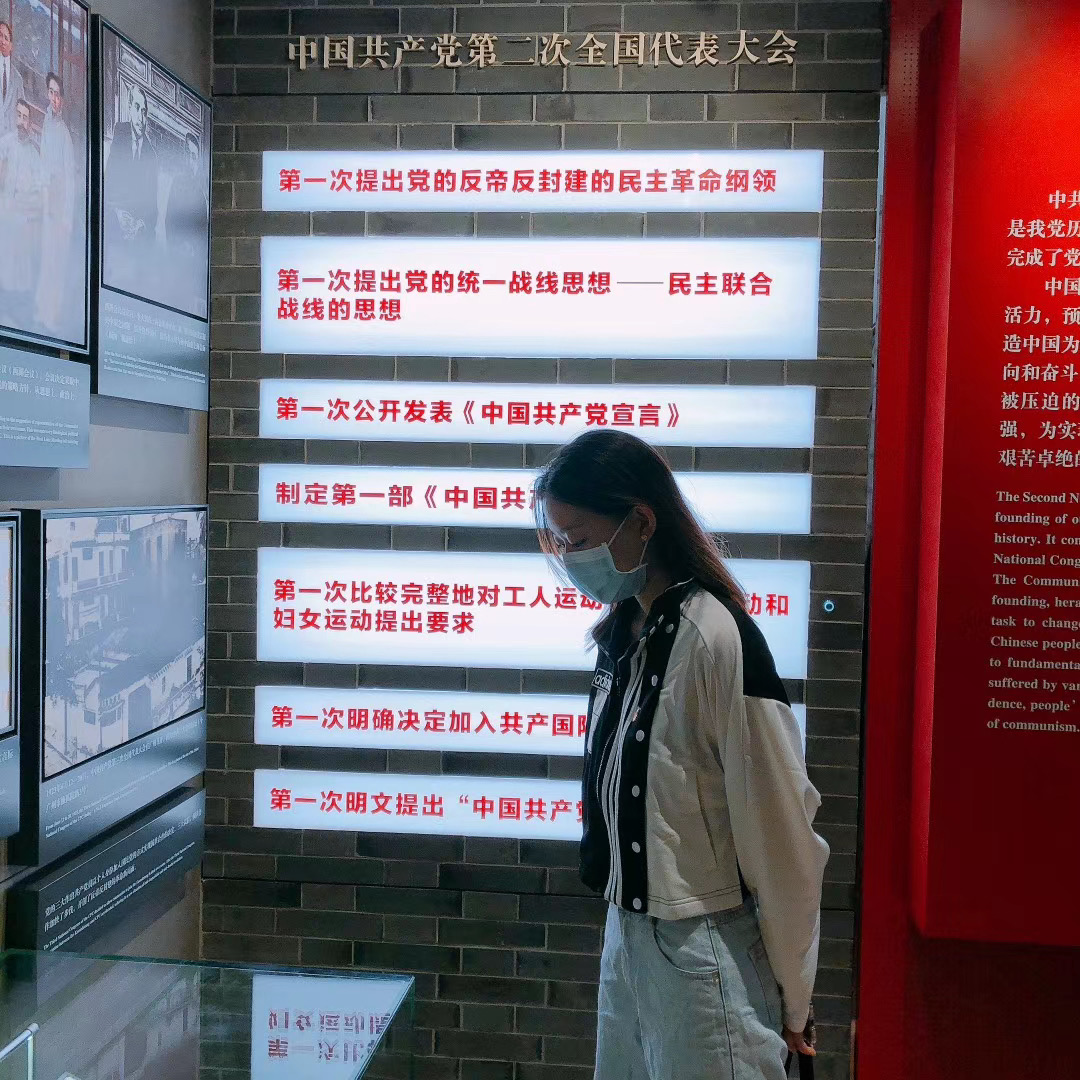 此次学习打卡之旅让她对老一辈无产阶级革命家革命历程有了更多的了解,也切身体会到了幸福生活的来之不易,前辈们的爱国情怀和牺牲精神也深深地烙印在心中。她表示,作为中国共产党的一员,应该学习革命前辈的优良品质,传承红色基因,弘扬革命历史,以更饱满的热情去生活,尽情挥洒青春的汗水。