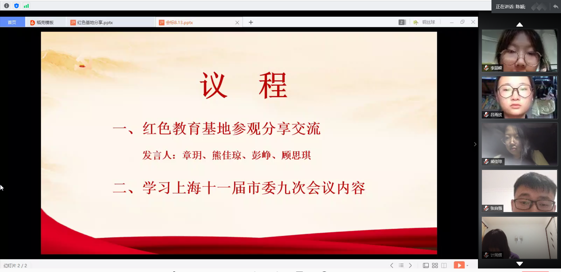 首先,支部书记陈颖老师对上海红色革命教育基地参观打卡活动进行了总结,并特别强调了新时代员工党员传承和发扬红色精神的重要性,并积极号召更多的员工党员与入党积极分子们行动起来,重温来时路,传承红色精神,铭记初心使命。