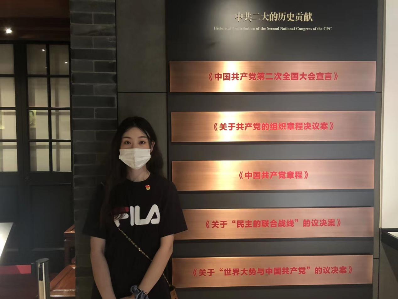 预备党员王宠也参观了中共二大会址,她感触很深,说道:历史是最好的教科书,通过这次参观学习,近距离接触历史,一个个再现的场景让我再次感受了中国共产党创建初期波澜壮阔的历史风云以及老一辈中国共产党人为国为民的革命精神和民族大义。前辈虽逝,但精神长存,新时代赋予我们新的使命,我们青年学子接过历史的接力棒,就要发挥好模范带头作用,先从思想上加强,把党的精神学好学透,激发使命感和责任感,再与当下实际相结合,落实到行动上。毕竟,空谈是无用的,行动才是最有力的证明。我们在社会主义的道路上继续前进的同时,最重要的是不忘初心,在学思践悟中坚定理想信念。作为医员工,我们肩负着国人健康的重任,更要永葆从医初心。我们要时刻牢记,中国共产党人的初心和使命,就是为中国人民谋幸福,为中华民族谋复兴。因此,追寻党的历史足迹,重温党的历史,才能更加深入了解党的精神内涵,才能更加爱党爱国,更加自觉为党和人民服务。我觉得这也是四史教育的重要目的。