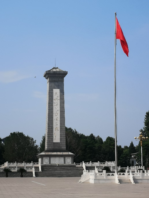 在烈士陵园门口,一幅对联深深的震撼了我:“为有牺牲多壮志,敢教日月换新天”。身心顿时涌上了一股强劲的力量。陵园中央矗立着一座纪念碑,高大而雄壮,它见证了历史,见证了华北人民反抗侵略的不屈斗志。