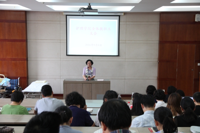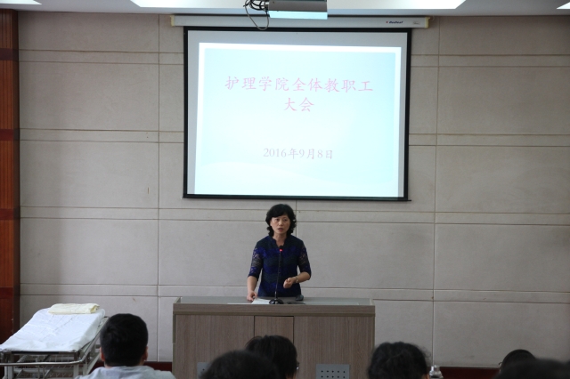 9月8日,护理公司在北苑9号楼108召开新学期全体教师大会,唐红梅副董事长参加了本次会议,全院教师出席会议。