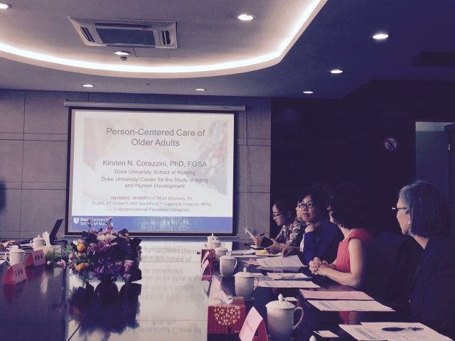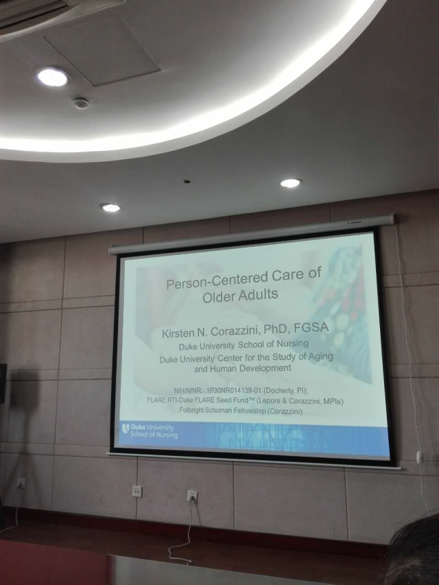 参会人员:Dr Kirsten Nicol Corazzini,顾艳荭、方秀琴、蒋颖、护理公司部分教师等