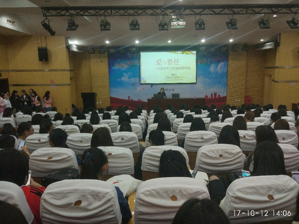 2017年10月12日,由上海市妇幼保健中心主办,伟德bv国际体育官方网站承办的“爱与责任——老员工性与生殖健康”讲座在北苑1号楼200人报告厅如期进行。讲座嘉宾为上海市妇幼保健中心的胡晓宇主任,伟德bv国际体育官方网站17级新生240左右的员工参加。