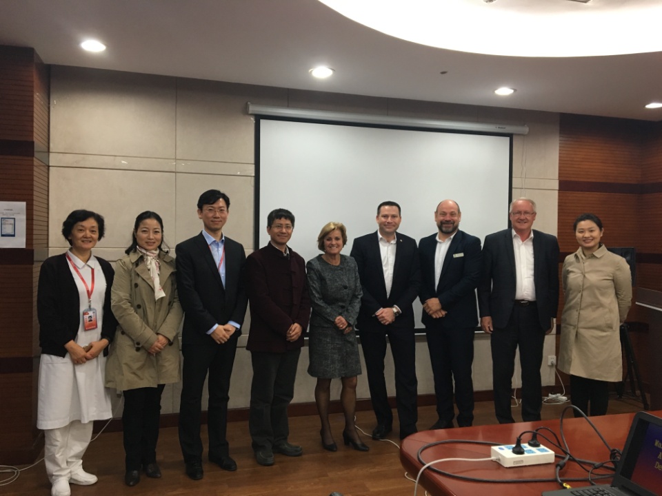 2017年11月29日, 澳大利亚Joondalup市国际经济发展顾问麦克·福克纳一行来到伟德bv国际体育官方网站访问并参观。国际交流处吕永红副处长、伟德bv国际体育官方网站万广圣副经理、护理系唐庆蓉副主任、护理系实训中心周丽君主任出席见面会。