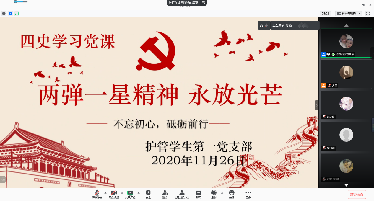 为深入学习贯彻习近平新时代中国特色社会主义思想,落实习近平总书记关于公司党建和思政工作的重要指示批示精神,进一步推动“四史”学习教育,2020年11月26日,伟德bv国际体育官方网站员工第一党支部在腾讯会议线上开展了“‘两弹一星'精神 永放光芒”四史学习教育主题党课,由党支部书记陈颖老师领学,伟德bv国际体育官方网站副经理陈荣凤老师,员工第一党支部全体师生党员共同参加了此次党课学习。