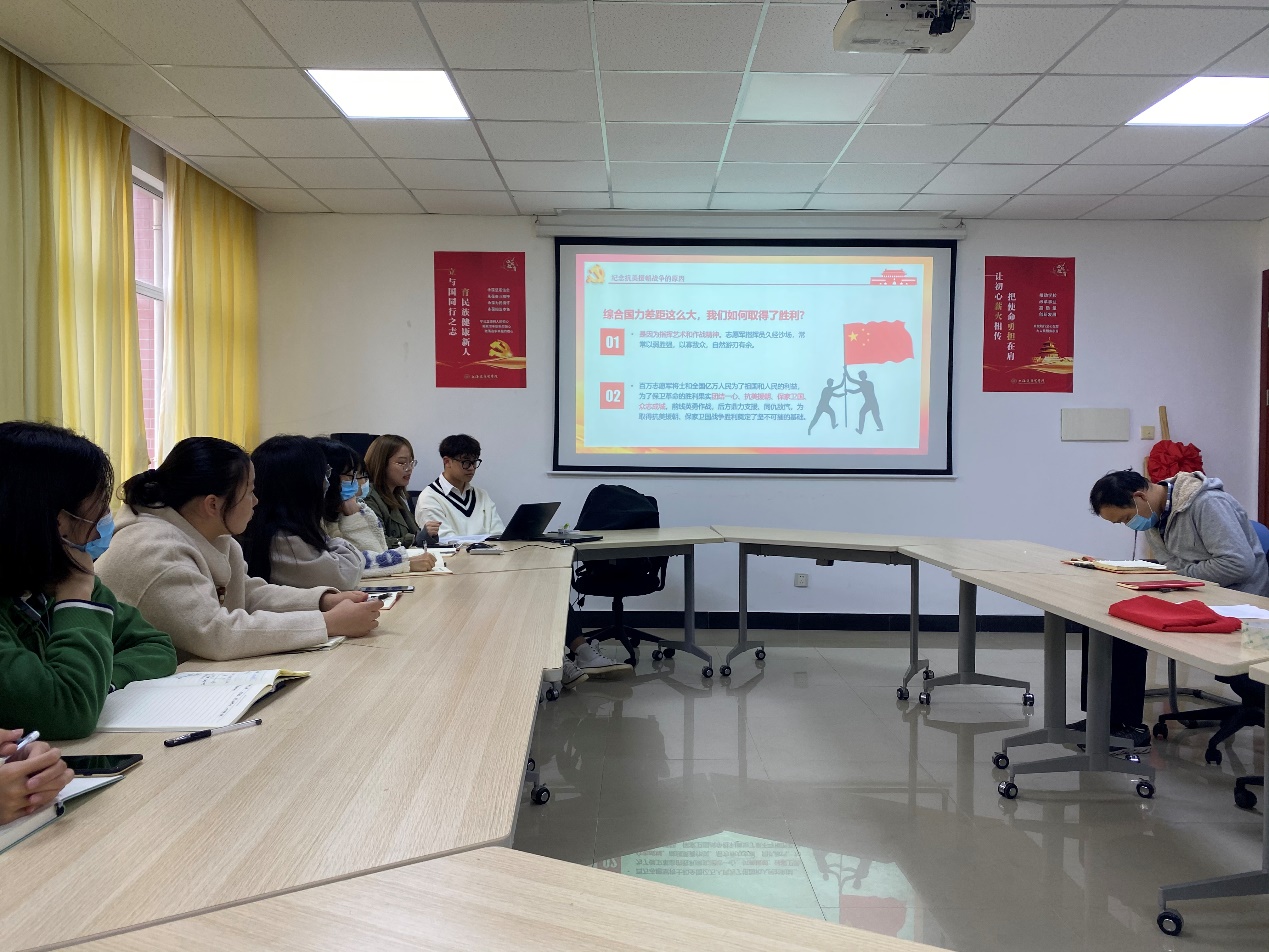 主讲人钱咏雯同学表示2020年是中国人民志愿军抗美援朝出国作战70周年。抗美援朝战争不仅奏响了一曲曲可歌可泣的凯歌,而且锻造出伟大的抗美援朝精神。在这场敌我实力悬殊的战役中,中国共产党和人民军队英勇顽强、舍生忘死,为了祖国和民族的尊严而奋不顾身,为了完成祖国和人民赋予的使命、慷慨奉献自己一切,为了人类和平与正义事业而奋斗。作为一名当代青年老员工,我们应当时刻牢记如今的美好生活来之不易,坚定不移地发扬抗美援朝精神,将其融入到我们的生活、学习、工作中。2020年6月11日,中国发展研究基金会发布报告《中国发展报告2020》中提到“中国人口老龄化程度正持续加深,老龄化趋势不可逆转。”那么,社会对健康管理的需求也日益提高。我作为健康服务与管理专业的一名员工,要不断深入学习专业知识,扎实基本功、拓宽知识面,提升自我的专业素养,为国家的健康事业贡献自己的一份力量。