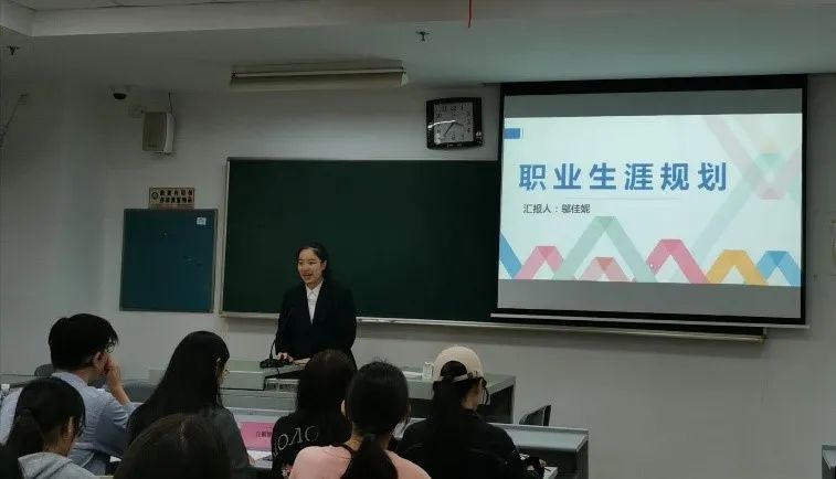 他们以精美的ppt为载体,为大家展示了自己的职业生涯规划思路,进行自我分析、环境分析、找出自己性格与职业的结合点,表达了自己学业和职业的目标规划,最后制定属于自己的道路。
