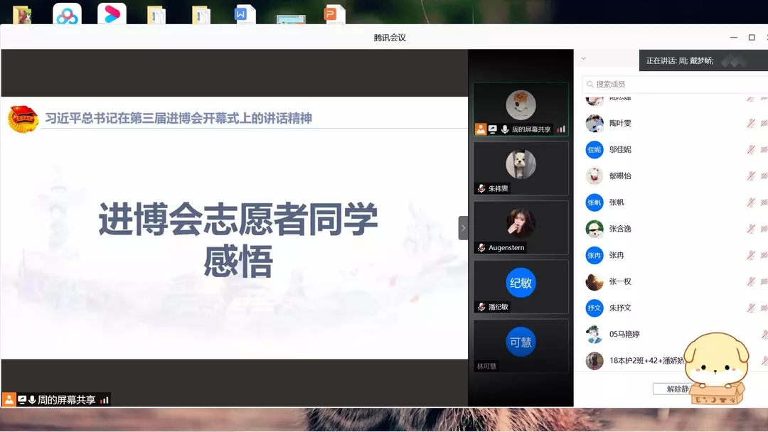 20201121日,18级护理(本科)2班通过腾讯会议邀请进博会志愿者同学进行发言谈论相关感悟,分享与浦东开发开放有关的红色书籍感悟,通过同伴教育来实现思想知识的传播。