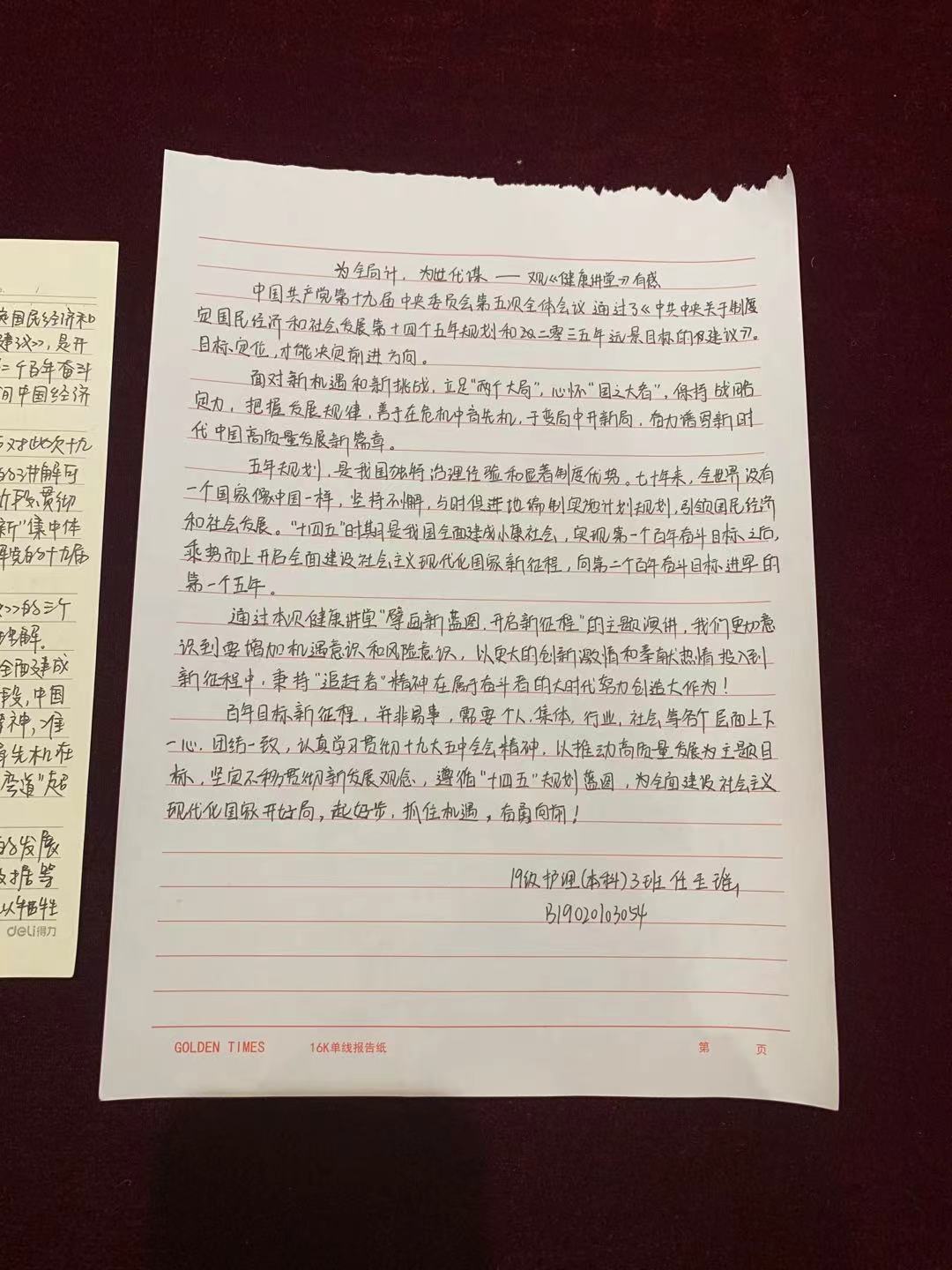 19级护理(本科)3班 任玉瑶