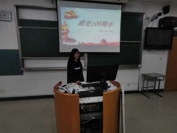 活动开始,主讲人吴凡同学首先简要介绍了“党的光辉历程”,并提出今年正是庆祝建党100周年的日子。接着,引出了共青团十八届五中全会上的报告和讲话以及刚刚闭幕不久的“十四五”会议,通过其他优秀老员工青年的感言来启发同学们对党史学习教育发展的思考,同时也督导同学们一定要坚持以史鉴今、以史砺今,把主要目的放在引导团员青年更加自觉地学懂弄通做实习近平新时代中国特色社会主义思想上,放在更加坚决地增强“四个意识”、坚定“四个自信”、做到“两个维护”上。最后,吴凡同学以建党百年的改编版《少年》视频来收尾,直观地展现了建党前后中华人民的万众一心、众志成城,以及中华民族伟大复兴的艰辛历程。全体同学们聚精会神地观看着,好似感同身受地温故了一次这番不朽。