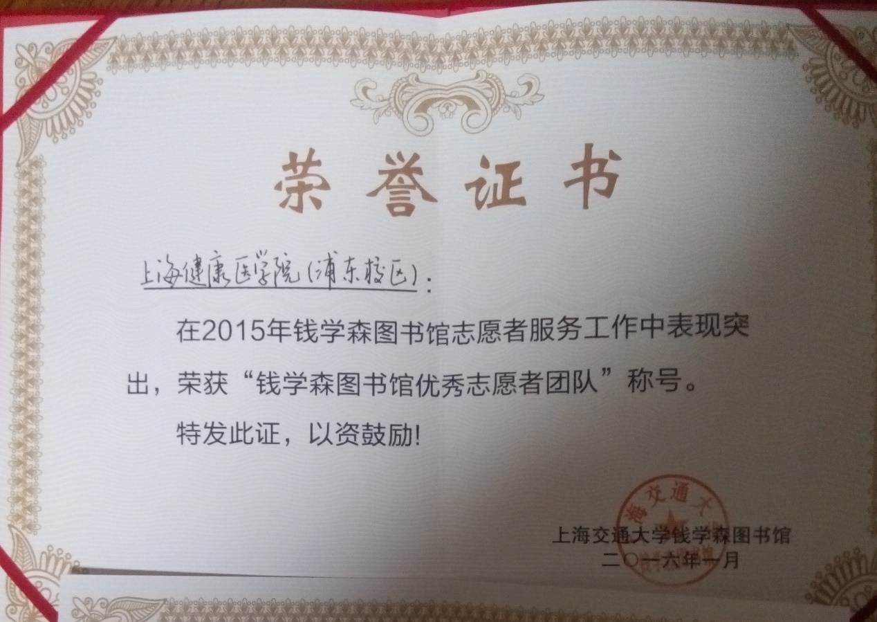 2016年1月,伟德bv国际体育官方网站员工党支部书记、钱学森图书馆志愿者团队校内指导老师何雅敏携团队志愿者参加总结大会、并接受表彰。