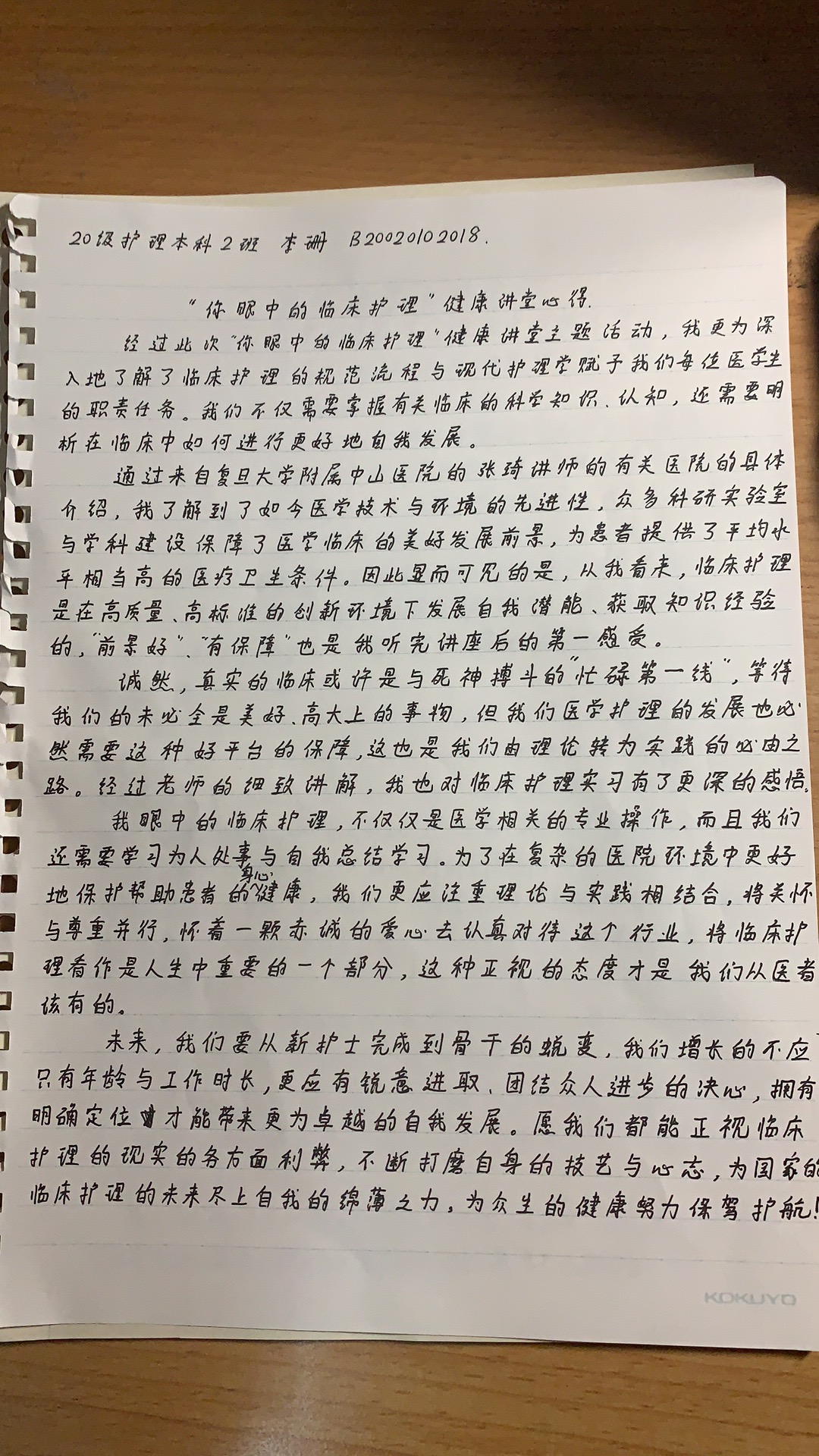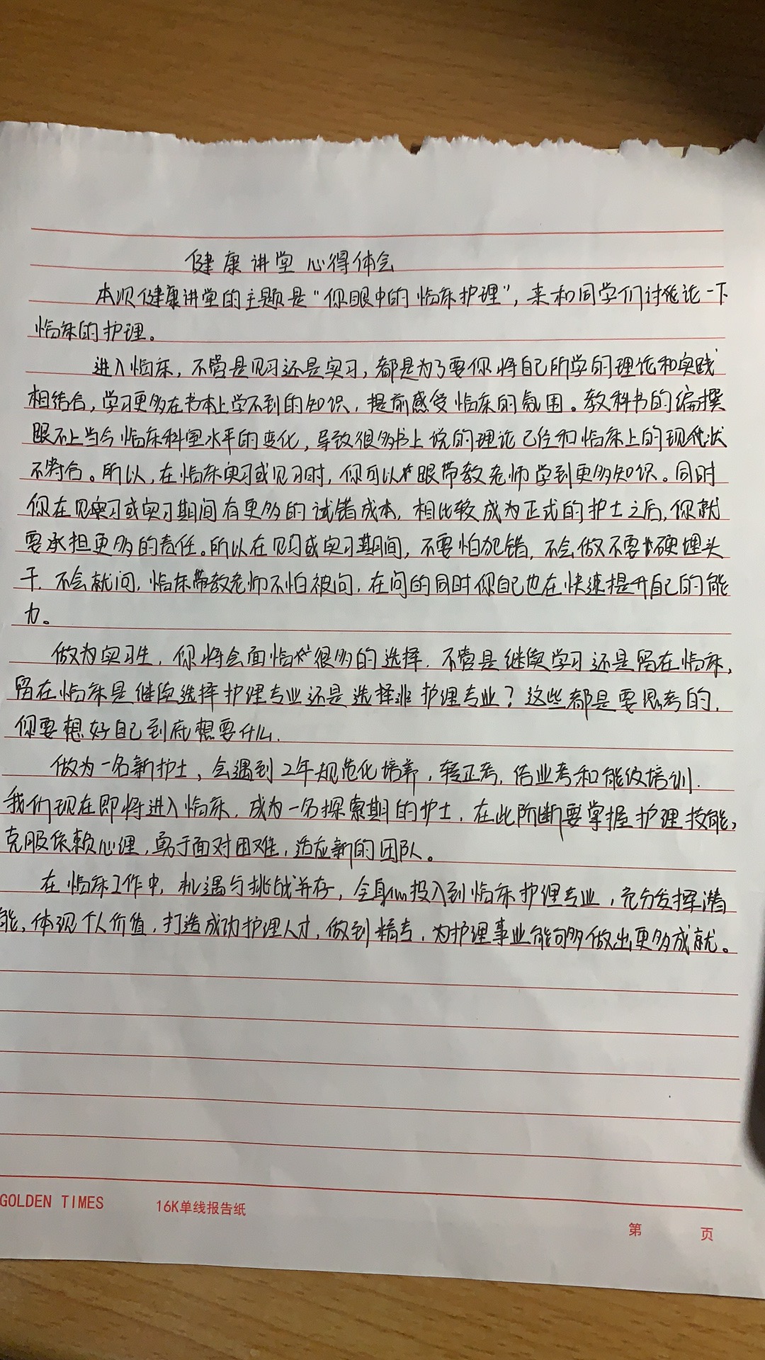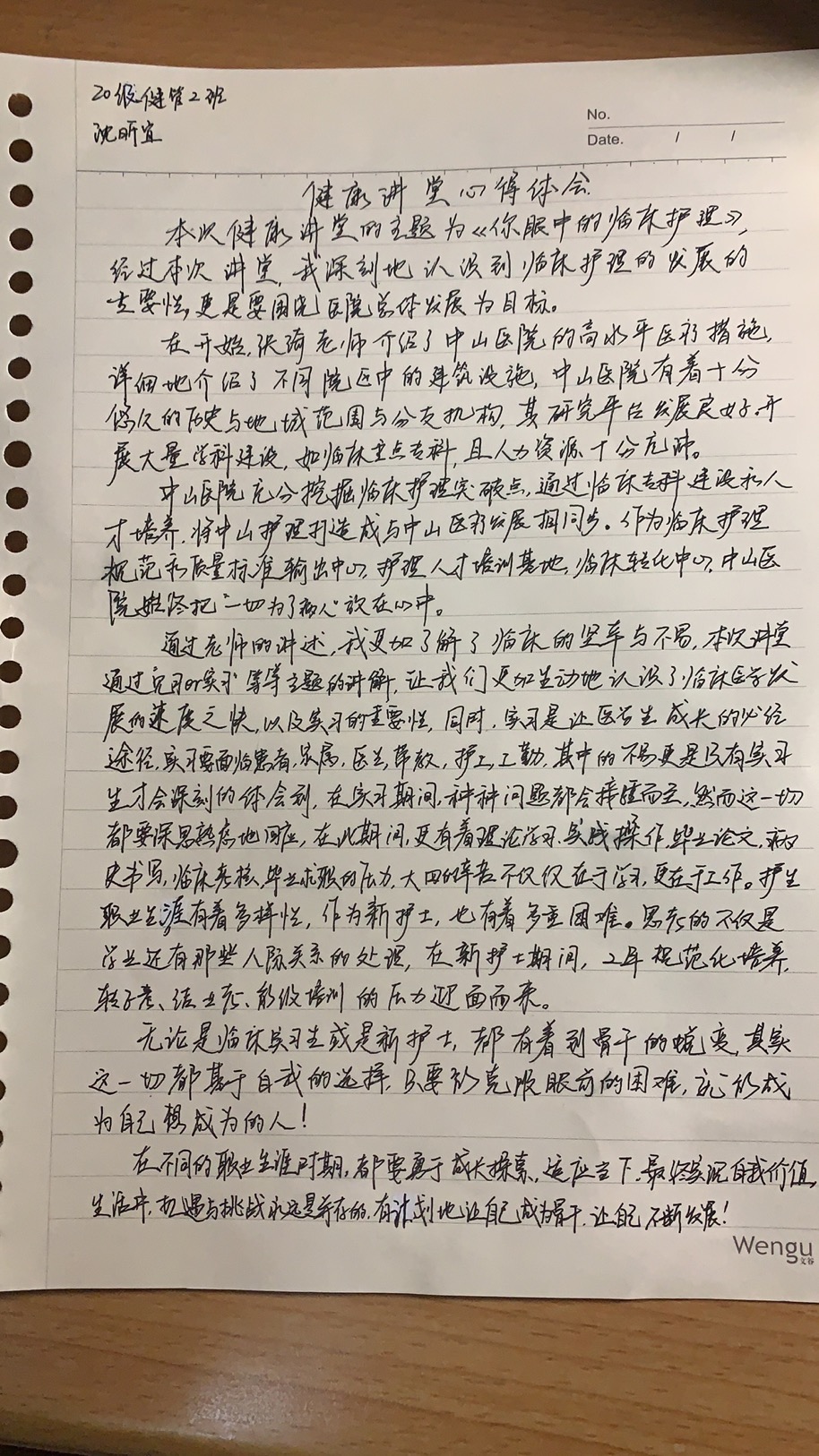书本知识总归遥远,我们在学习时不能仅仅局限于纸上谈兵,更应该走进临床,了解临床。张琦老师的分享很好地让同学们了解临床护理的工作制度、工作方法等情况,临床护理是理论与实践的结合,是把理论知识向专业技能转化的基础阶段。如果没有良好的专业知识,实践也就无法进行。通过本次健康讲堂,同学们纷纷表示,在公司一定要高度重视理论知识的学习,以及加强基础文化的素养。