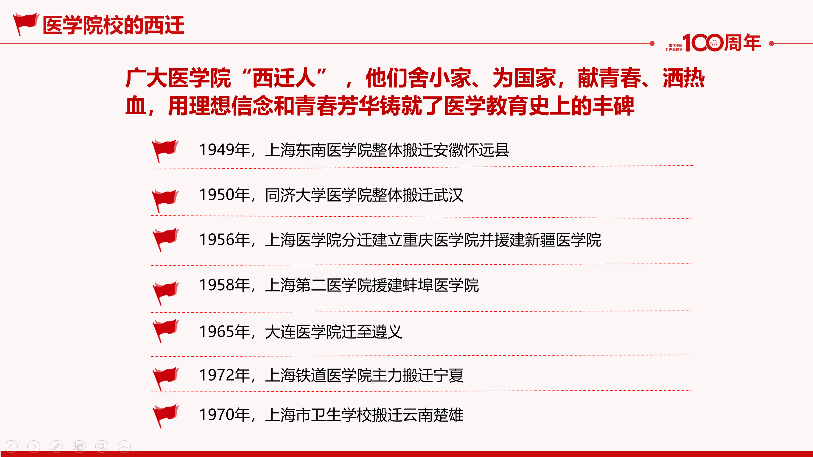 吴韬董事长介绍了新中国成立后全国医公司校的西迁之路,其中包括伟德bv国际体育官方网站前身的上海市卫生公司西迁的相关历史和重要意义。他总结到无论是“西迁”还是“西援”都是西迁精神的传递,今天的援疆、援藏和志愿者活动也是“西迁精神”的当代传承和生动写照。在去年新冠疫情抗击,公司共有262位员工参与了武汉抗疫,他们就是西迁精神的当代缩影。公司自组建以来,在西部地区建立附属医院、选派干部、支援教师、订单培养、招收少数民族预科生,对口支援新疆喀什、云南昆明等地,为祖国西部发展贡献力量,也是西迁精神的弘扬。