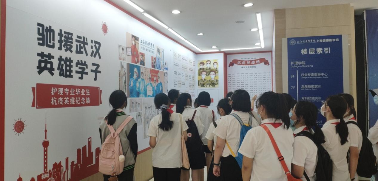 再热的天气也抵挡不住同学们学习的热情,同学们在九点就早早地抵达了实验中心。本次参观由实验中心志愿者同学在老师的带领下进行讲解。志愿者们首先从一楼大厅开始向周浦实验的同学们介绍了抗疫墙,以及大楼内整体概况。