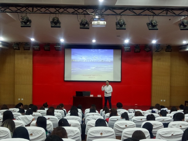 专题讲座中,蒋维维老师首先介绍了二精中心“周末园丁”项目,包括“哈皮英语”、“带我看世界”等特色活动,并针对每个项目详细的讲解了主要工作内容和工作形式。蒋老师对之前在二精中心服务的志愿者们给予了高度赞扬,并鼓励更多同学参与进来。