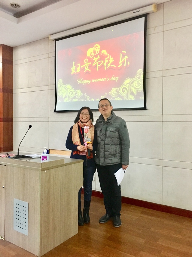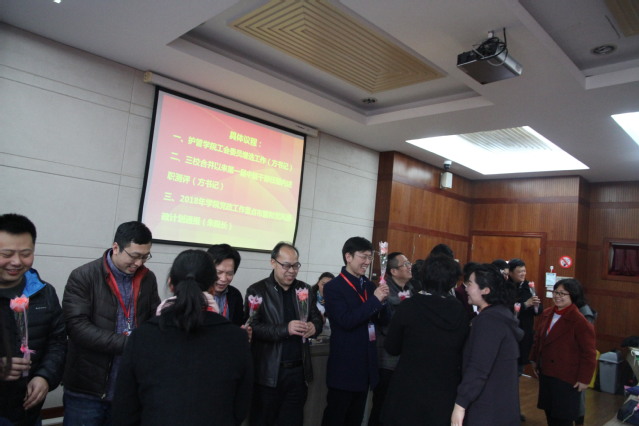 下午1点,公司教职工大会暨庆祝三八妇女节大会在9号楼106室召开,公司朱爱勇经理、广圣副经理两位男领导为公司的每一位女员工送上了芬芳的玫瑰,同时送上的是对全体女教师的祝福。单丝不成线,独木不成林,红花还需绿叶衬。大会的最后,女教师代表也向全体男教师献上了鲜花,并集体拍照留念。