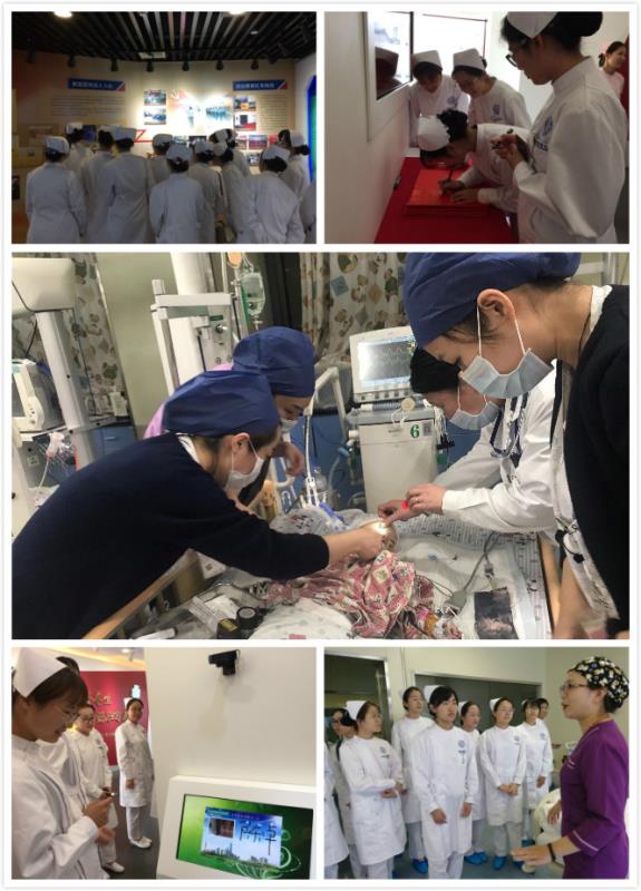 其次,重症监护室参观:紧接着,在护士长亲切的引导下,我们参观了重症监护室。每家医院的ICU都有扇厚重的门,门外是心急如焚的家属,门内是不停奔走的ICU医护。为了挽救生命,ICU医护们千千万万遍地与死神殊死搏斗,千千万万遍地不分白昼黑夜守护。家属和医护,两个群体,隔着一扇门,都在为生命而努力及祈祷。我们穿上一次性鞋套,轻手轻脚地走在ICU的通道中,隔着玻璃窗口似乎都能感受到里面的紧张氛围,护士们在里面忙碌地穿梭着,守护着病人的生命。
