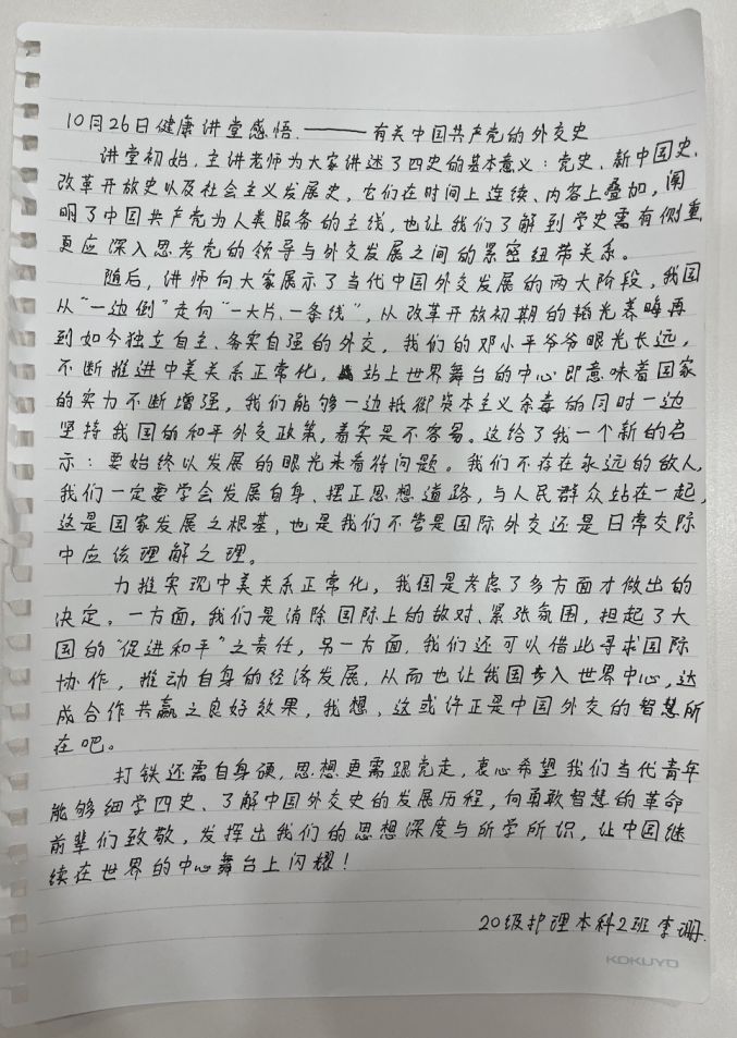 在如今这个全球一体化趋势加剧的社会中,政治和每一个人都有千丝万缕的联系,而国家的命运更是和每一个生活在这个国家中的公民的命运息息相关。没有实力,一切外交手段都是空谈。活动伊始,薛老师以独特的视角,带领我们回顾历史,了解中美建交这一历史事件背后的小细节,认识到中国共产党带领下的中国从站起来、强起来到富起来的具体表现。而我们伟大的领导人们始终把人民利益放在心中最高位置,把“为人民服务”作为党的宗旨,把“一切为了群众,一切依靠群众,从群众中来,到群众中去”党的群众路线作为党的生命线和根本工作路线。