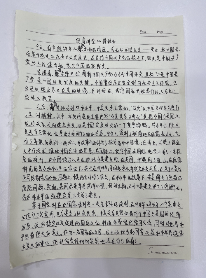 虽然只有短暂的一小时,但不少同学通过这次活动了解了邓小平对于中美关系正常化进程中有多么关键的作用,大家都受益匪浅,纷纷写下自己的感悟和收获。