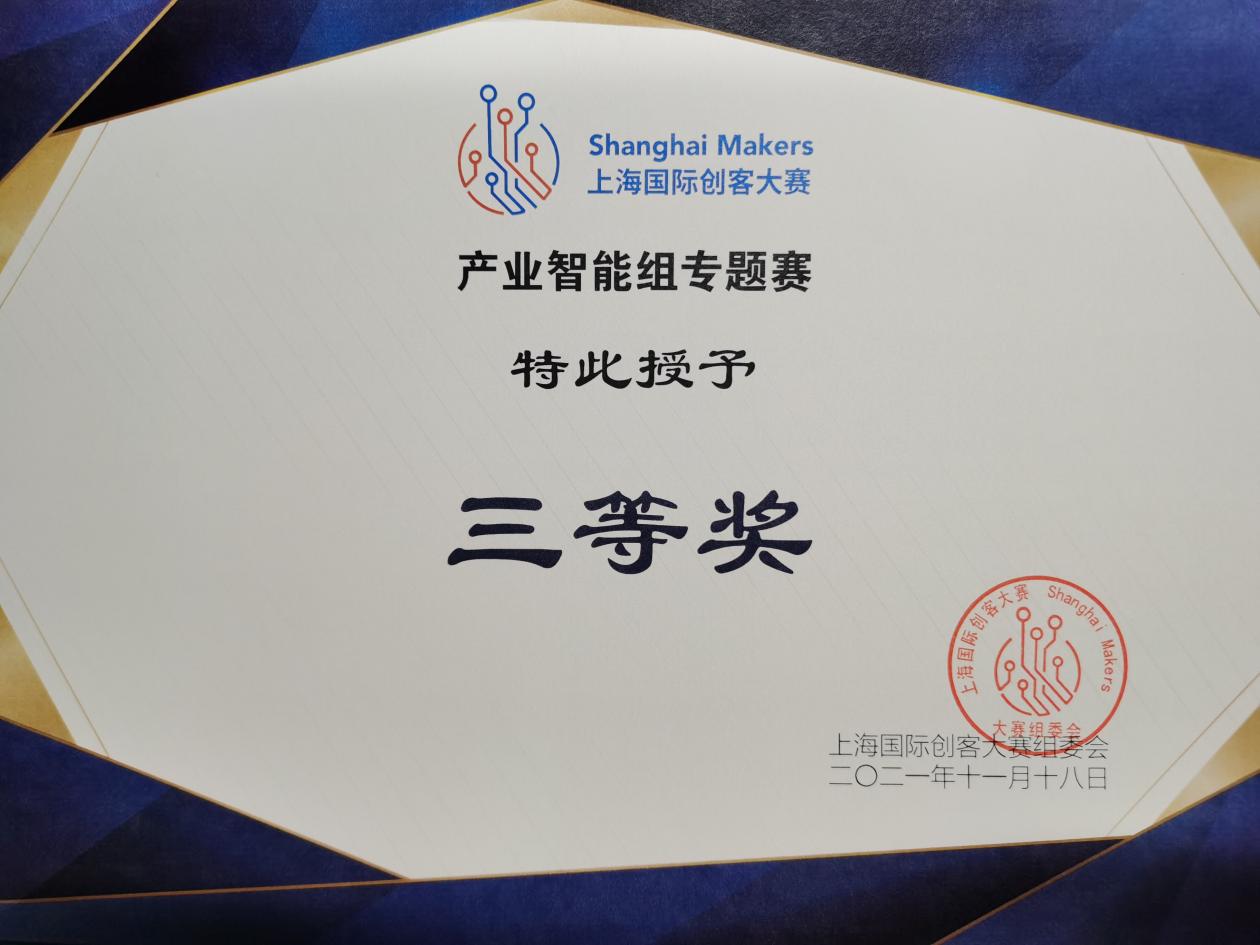 伟德bv国际体育官方网站研发的“康手乐——智能防颤康复辅助勺”获得了2021年上海国际创客大赛产业智能组三等奖。公司学子首次参加此次赛事即取得了不俗的成绩。