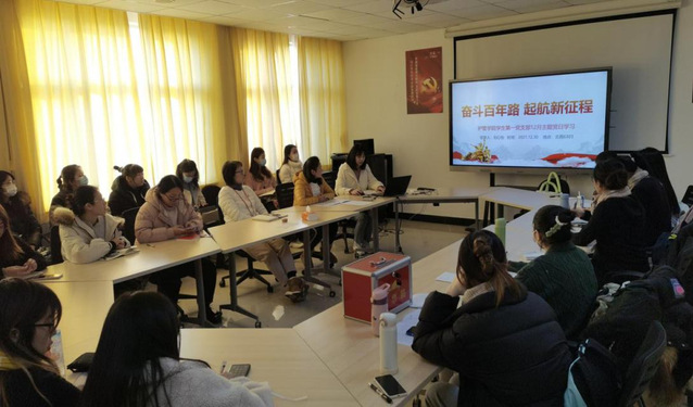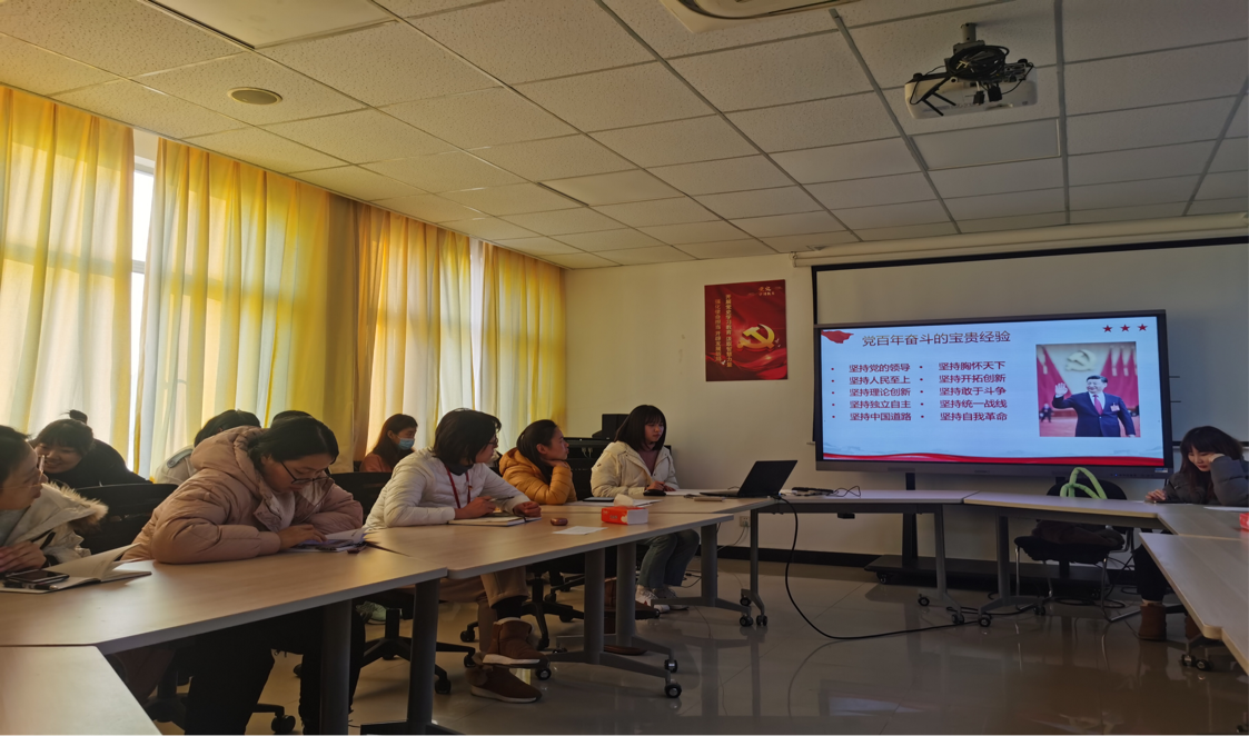 2021年12月30日下午15点,伟德bv国际体育官方网站员工第一党支部在6号楼303开展了“奋斗百路 启航新征程”主题党日学习活动。活动由支部书记陈颖老师主持,员工党员刘心怡围绕党的十九届六中全会会议精神展开领学,随后围绕主题党员们进行了交流发言。
