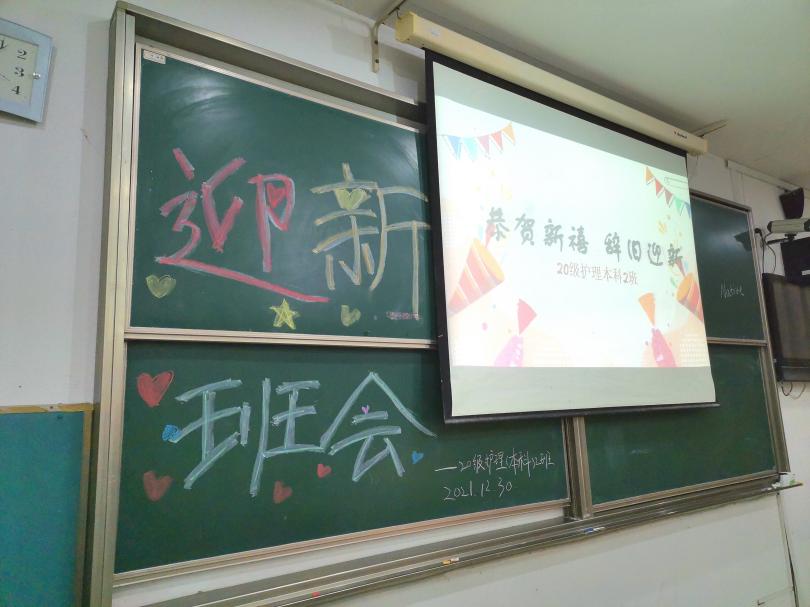2021年12月30日18点,20级护理(本科)2班在6101教室举办了“恭贺新禧,辞旧迎新”主题班会。早在半个月前,班委们便已开始策划本次迎新班会,从活动设计到游戏选择,再到餐饮、活动地点准备,大家都穷尽所思,共同参与其中。