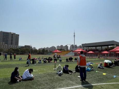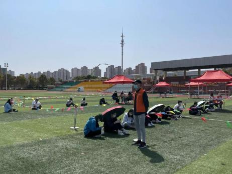 摊位引导组,排队引导组,信息核验组,辅助检测组,各组志愿者分工明确,有序维持着核酸检测的进行,在这近三十度的春日里,核酸检测的志愿者们顶着炙热的太阳在操场上维持着核酸检测的秩序以保证核酸检测活动的正常进行。