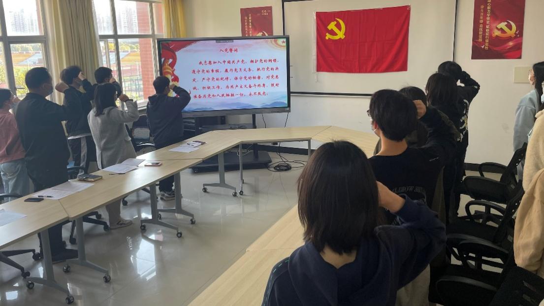 在大会上,临时党支部组织委员何雅敏宣读公司党委《关于成立公司党总支临时党支部的请示》的批复,何雅敏、陈娅俊、郭利军三名同志任临时党支部委员会委员,陈娅俊同志任临时党支部书记。临时党支部师生党员共同重温入党誓词,共同学习了中共上海市委组织部下发的《在大战大考中彰显特殊责任、特殊担当——致全市共产党员的一封信》。胡雪东、张青青代表教工党员进行了交流发言,唐致椿、齐雪代表员工党员进行了表态,他们纷纷表示将始终牢记党员的职责使命,弘扬伟大抗疫精神,坚守共产党人的情怀,扎实做好本职工作,做到一环扣一环,环环相扣,一事跟一事,事事解决,将每一个部署决策落实生效。