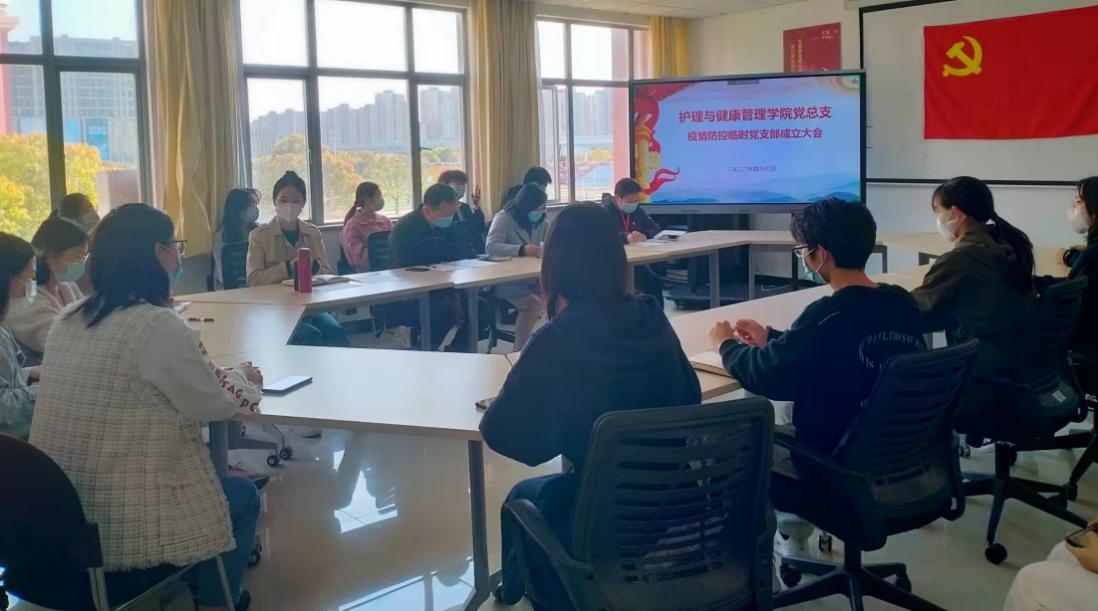 为充分发挥党支部的战斗堡垒作用和党员先锋模范作用,响应习近平总书记“让党旗在防控疫情斗争第一线高高飘扬”的号召。在党总支书记郭戎静和党总支副书记、经理朱爱勇的亲自部署下,经公司党总支研究并报上级党组织批准,于2022年4月3日下午,护理与健康管理公司党总支成立疫情防控临时党支部。公司领导班子、党总支委员和在校师生党员以线上线下的形式共同参加本次大会。