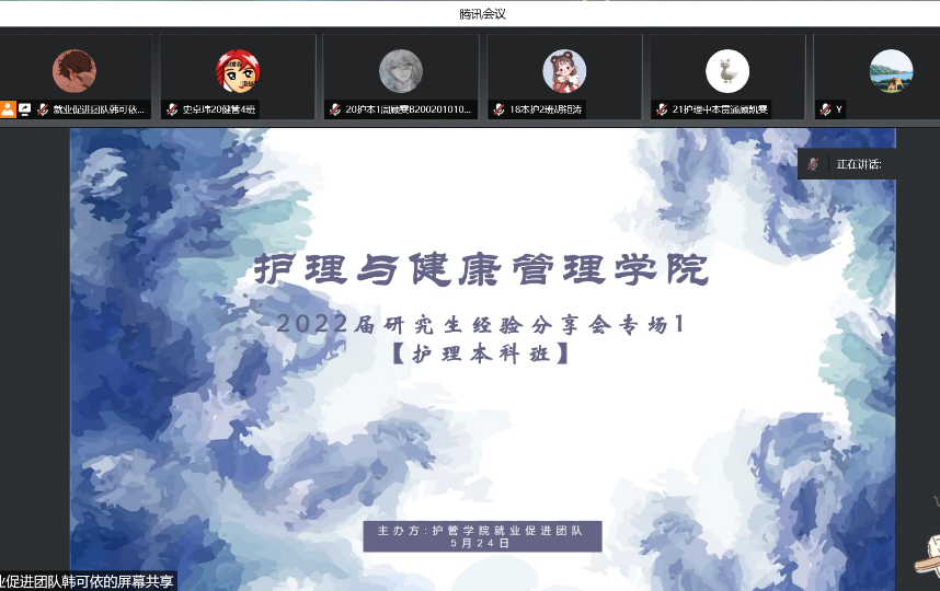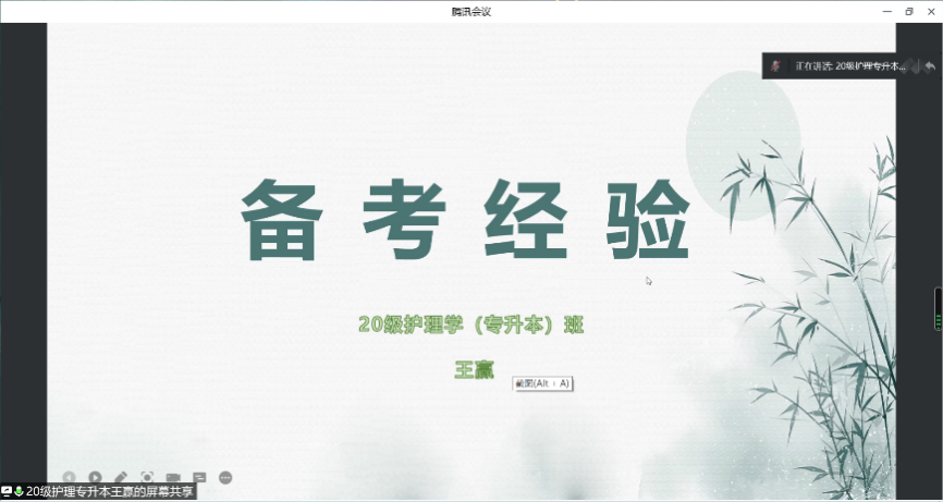 本次分享会邀请了来自20级护理专升本班的常瑞、王赢和杨燕三位同学。