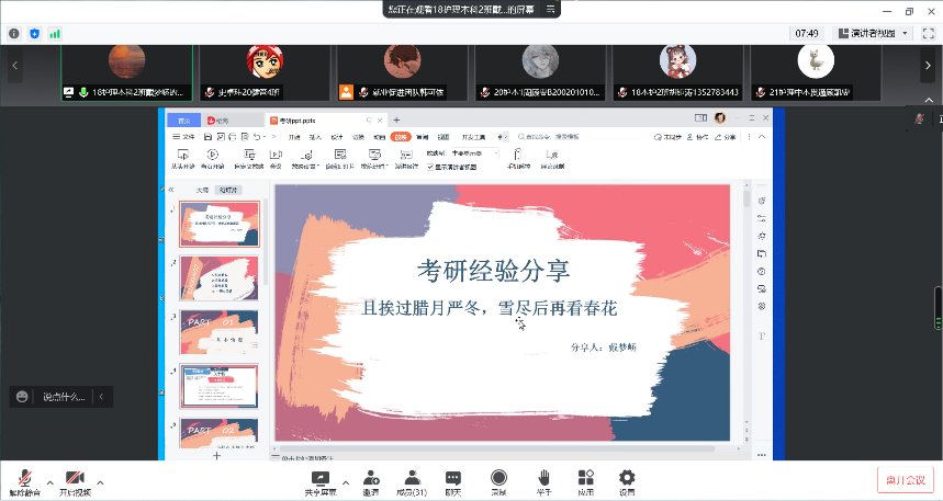 每年我们都能看到许多成功考研的学子,在赞誉他们取得的佳绩之时,也不忘向他们汲取学习的经验与方法,为此伟德bv国际体育官方网站员工事务部就业促进团队于5月24日至5月26日分别开展了三场主题为“‘研'途有你,前途有卜”的线上考研经验分享会,共邀请了九位成功考取硕士研究生的同学们分享了他们在考研过程中积累的成功经验及心得。