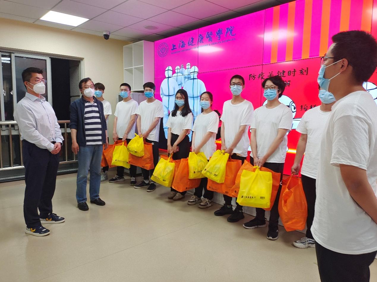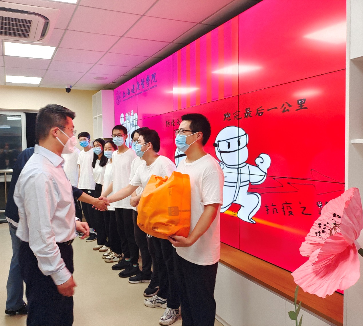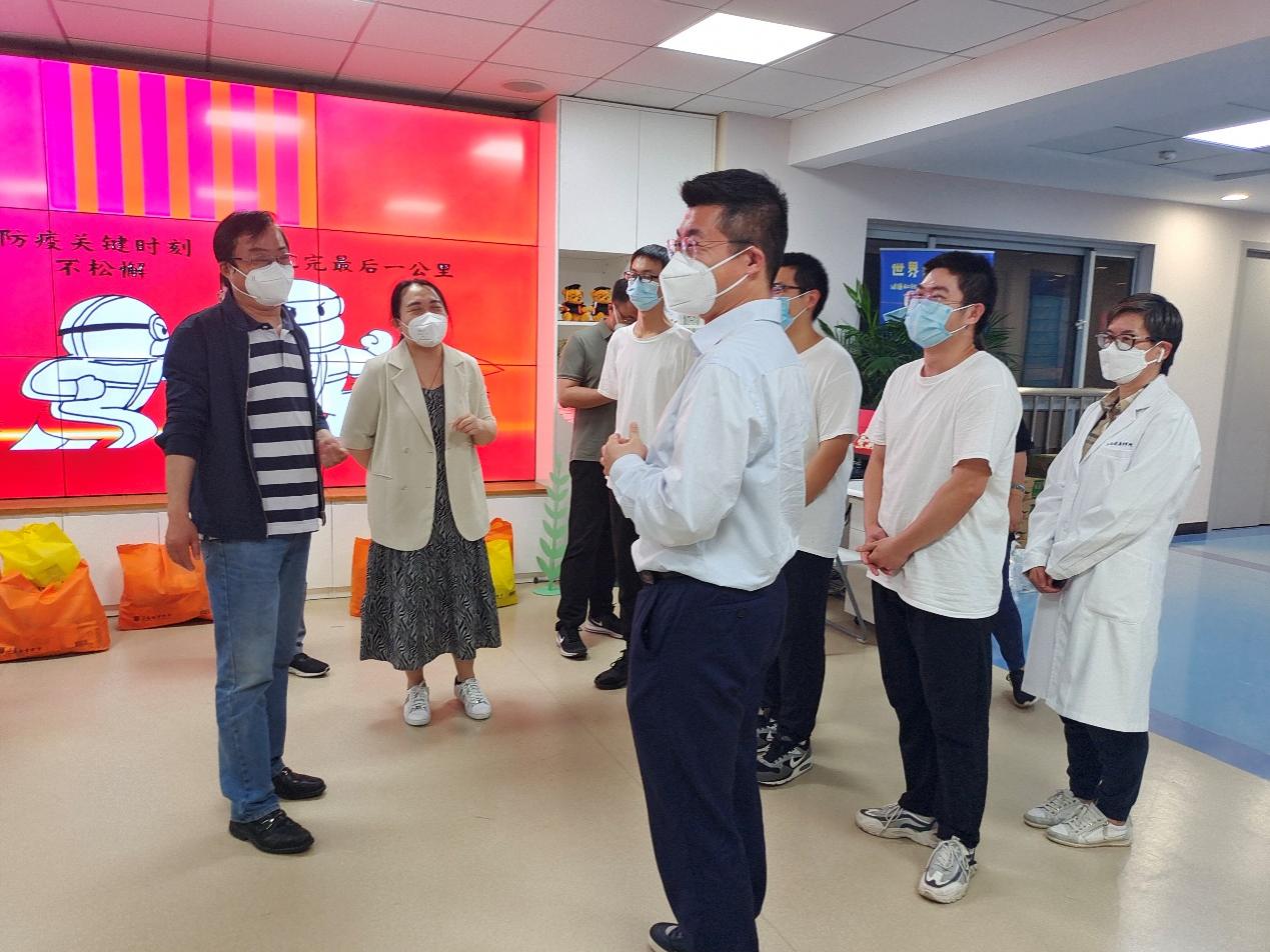 5月31日晚上,董事长吴韬、副董事长陈小冰赴北苑9号楼慰问“核酸采样小组”的同学们。公司防控办主任、后勤处处长张美蓉,北苑综合办主任董伟峰,员工处副处长(主持工作)吕晓丽,资产处副处长邢寰宇,党校办副主任于杨,医务室主任陈建萍,伟德bv国际体育官方网站经理朱爱勇等参加了本次活动。公司领导为同学们准备了丰富的生活用品和零食饮料,并亲自交到每一位同学的手中。校领导们高度赞扬了同学们的奉献和担当精神,表扬大家是封校期间“最值得尊敬的人”,同时校领导也十分关心大家的学习和生活,逐一询问了同学们未来的发展规划和生活需求,并强调公司将全力保证物资供应充足,叮嘱大家在为公司防疫做贡献的同时,一定要做好自身防护,保证自身的安全和健康。