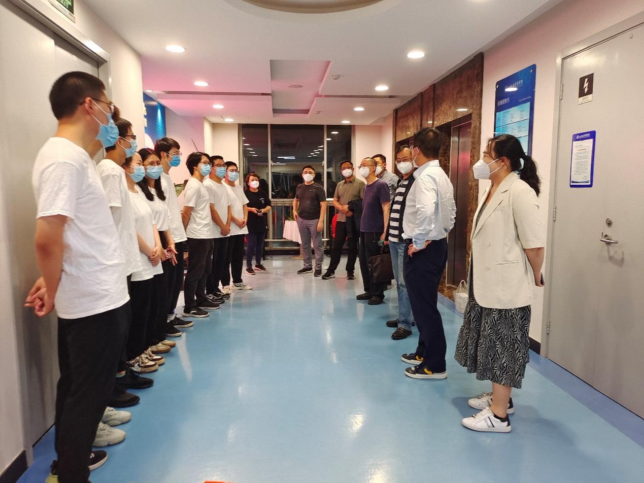 “核酸采样小组”大组长谢远航同学代表大家向校领导和老师们的到来表示了衷心的感谢,并表态一定会以最严格的防控标准、最规范的操作流程、最专业的技术水平,保质保量地完成这项严肃而又重要的任务,请公司领导和老师们放心!