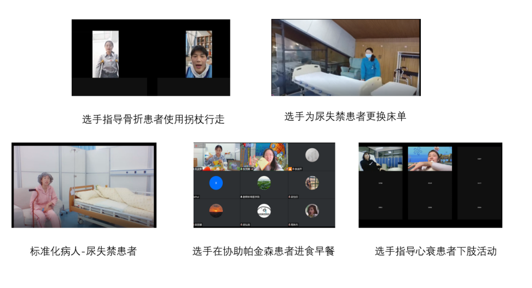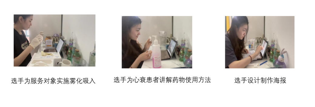 作为该赛项的国家集训基地,需要完成国家队5名选手的日常集训工作。突袭上海的新冠疫情打乱了本轮选拔赛的集训和考核工作,居家隔离的状态阻断了比赛的进程。在专家组长指导下,教练组组长针对选拔赛的6个考核案例,迅速开启工作模式,征求选手训练的需求和想法,反复多次与专家、教练沟通、协商,发挥专家的专业特长,制定高效的冲刺集训计划。在公司教育数字化转型的引领下,数字资源及线上平台成为此阶段赛训的主要手段,选手通过线上平台,按照考核要求完成患者照护整个过程。疫情特殊时期,教练团队纷纷临危上岗,扮演标准化病人(SP)的角色,整个训练的过程都尽最大努力实现模拟演练的真实性,从用物到场地、从穿着到动作,尽可能做到真实、到位。短短的6天集训,选手纷纷表示收获满满:有的选手说“在与小伙伴同台展示过程中也让自己迸发新的思路和火花”;有的选手说“在专家教练的指导下,有种豁然开朗的感觉,以往自己在实训室反反复复练习遇到的疑惑在集训中迎刃而解”;还有的选手说“线上集训收获了意想不到的效果……”。