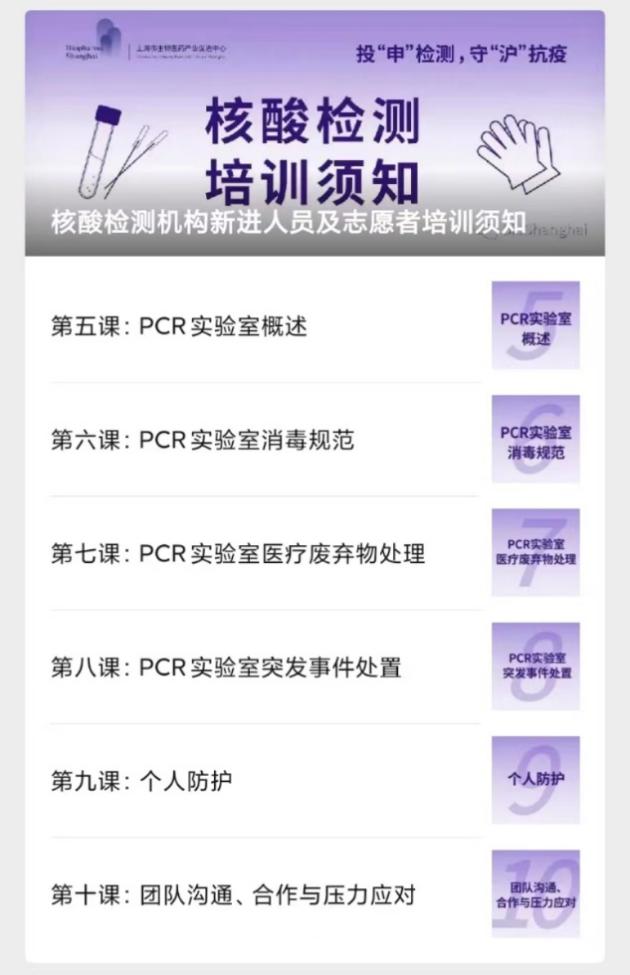本市新冠疫情社会面清零已进入最后攻坚阶段,常态化防疫检测即将大规模铺开,为确保有充足的专业人才支撑核酸检测需求的快速提升,上海市生物医药产业促进中心(以下简称“生药中心”)携手伟德bv国际体育官方网站、浦东人才市场等单位,拟对第三方医检所新进人员和报名参加核酸检测工作的专业志愿者开展规范化的专业培训,共有2200余人参加。
