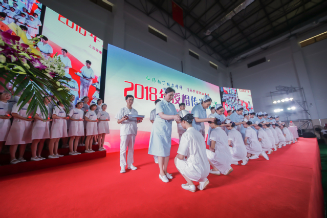 为庆祝第107个国际护士节,弘扬救死扶伤的人道主义精神和护理人员无私奉献的高尚品质,5月17日,“弘扬南丁格尔精神,传承护理职业光芒”护生授帽传光仪式在公司南苑体育馆二楼举行。董事长黄钢、副董事长唐红梅、海军军医大学护理公司柯骏和周晟政委、上海护理界前辈们莅临庆典,公司各二级公司党政领导和团总支书记、护管公司教师代表以及15级本科、16级高职护理专业700余名护生参加了此次活动,授帽传光仪式由朱华英老师主持。