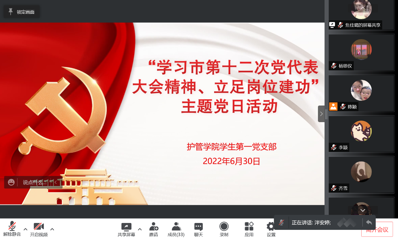 此外,陈老师做为员工党支部书记,在疫情期间通过线上腾讯会议方式,开展“抗疫同心·担当有我”、“致敬英烈 “疫”起守沪”、“学习市第十二次党代会精神 立足岗位建功”主题党日活动,统一思想,凝聚力量,号召组织党员们积极投身于疫情防控志愿者工作,为打赢大上海保卫战贡献力量,立足岗位发挥作用,在实践中体现党员的担当作为。同时,6月正值毕业班党员即将毕业离校,在校期间,陈老师忙于整理毕业班党员档案资料,协助毕业班党员做好党组织关系的转移。