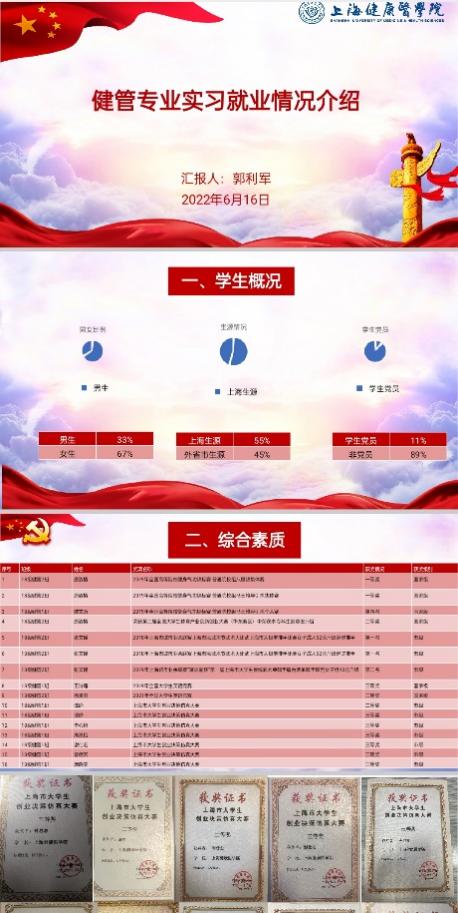 接下来,各用人单位对健管专业的实习工作进行了意见反馈,根据本单位情况提出了人才需求,并对实习就业一体化建设进行了广泛的讨论。用人单位纷纷对公司健管专业同学的 综合素质、临床学习和适应能力表达了高度的认可,希望校企之间能够共同开展更紧密的协作,通过申报孵化基地、搭建平台等方式,加强公司与用人单位的合作与交流。如上海嘉会国际医院人力资源部资深经理潘婕、上海邮电医院于学伟老师对公司员工在实习中的表现给予了高度评价;曹杨社区卫生服务中心科教科龚雯静科长、宜川社区卫生服务中心陈吉老师认为可以为健管专业员工拓展家庭医生助理这一具有广阔前景的岗位;上海市第一人民医院人事处时洪凯副处长、上海长海医院临床研究中心GCP办公室高越副教授谈到同学们具备参与科学研究的潜力,可以担任各类科研项目的团队工作;招商信诺健康管理有限责任公司人力资源部陈瑞恺、中国太平保险集团梧桐人家养老社区丁怡经理等认为校企应不断加强合作、提升实习阶段的育人质量,并在会上当场确定了今年计划招聘的人数;上海邮电医院于学伟、周浦医院祝军委两位老师谈到应引导员工充分认识到护理健康管理在人的生命周期中是一个全方位、全周期、全场景的重要纽带,此专业就业前景广阔。