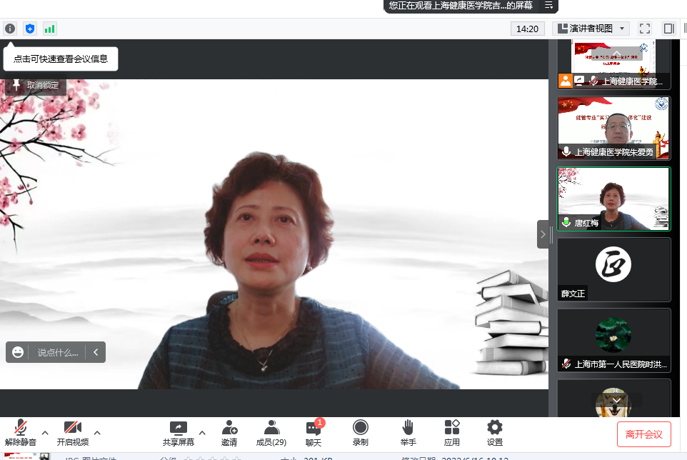 最后,唐红梅副书记对本次座谈会进行了总结,充分肯定了本次座谈会的形式和效果。唐书记谈到今天参会的诸多企事业单位都是在“大上海保卫战”中做出重要贡献的医疗相关单位,首先对各位参与领导表示了敬意,同时感谢各个医院、社区卫生中心和保险养老企业给健康服务与管理专业员工的指导、关怀与培养。唐书记认为,通过和用人单位对人才培养中的重要环节开展充分的沟通交流,公司和公司收集了一线的需求信息,对公司开展人才培养、专业建设有了很大的启发;同时,也希望用人单位给予公司员工更多的机会,多给员工学以致用、展现才干的岗位与舞台。