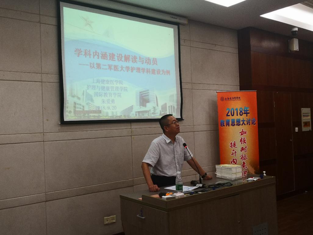 朱爱勇经理对公司的学科内涵建设进行了深入地解读与动员。朱经理从内涵与背景;探索与实践;思考与建议来进行阐述。阐明护理的发展历程和团队建设与专业建设的辩证关系,最后凝练总结28字方针:提高认识、总结谋划、凝练方向、汇聚队伍、传承创新、构筑基地、加强交流。在内涵建设上树标立志的剖析和解读,带给教师们非常大的触动和启示,会上掌声阵阵。